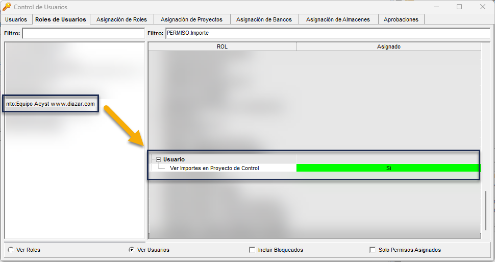 Ahora, en caso de que no puedas visualizar la información de los Importes o PU, deberás solicitar la asignación del permiso "Ver importes en Proyecto de Control":