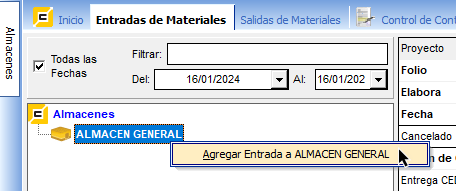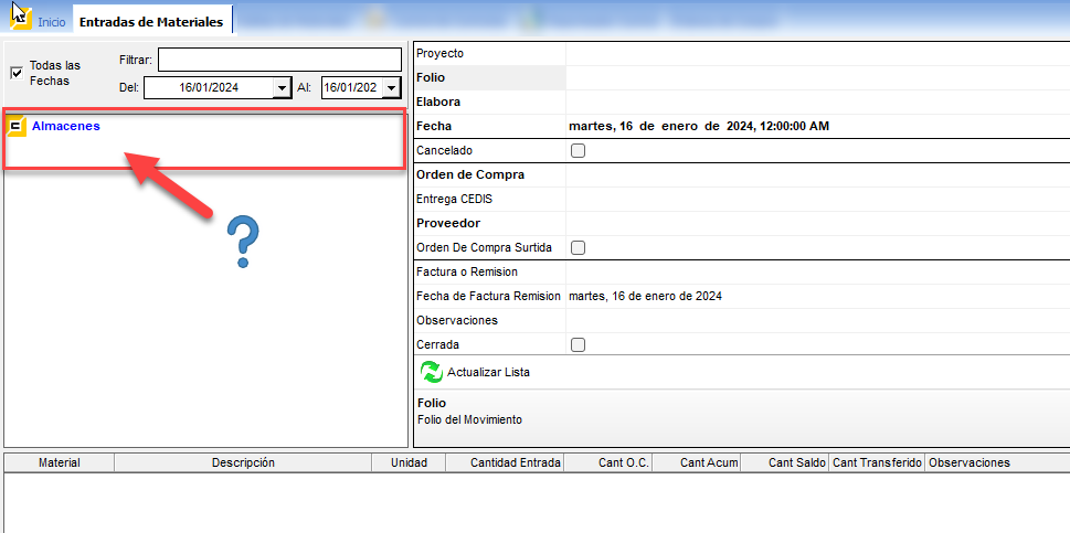 - Ingresar al Proyecto en donde SÍ tengas asignado un Almacén.