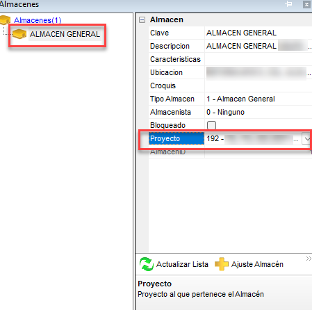 De esta manera, te será posible visualizar correctamente el Almacén asignado a tu Proyecto.
