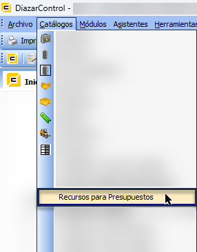 - Dirígete al menú de "Catálogos" y Selecciona "Recursos para Presupuesto".